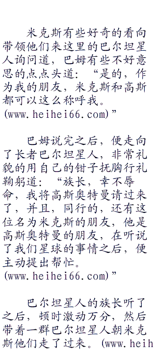 巴尔坦星人激动的指着巴尔坦r星对高斯和米克斯两人说道,两人点了点头,高斯不由得问道:“我们该怎么进入?”