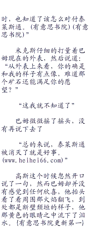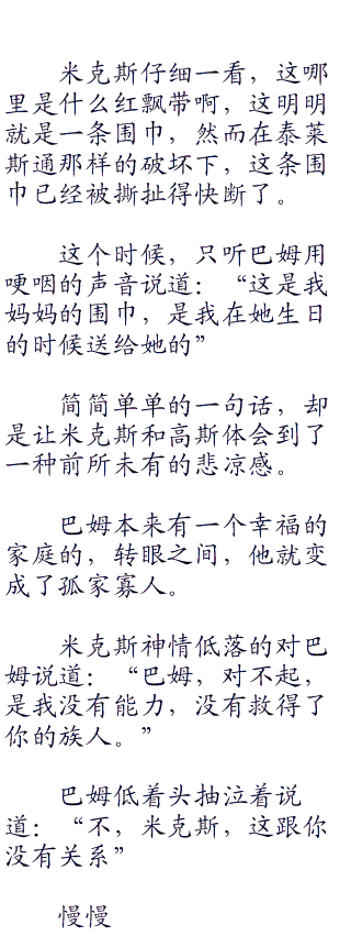 不过米克斯还是相信了他的话,因为他的声音和巴姆的确是一模一样,他不由得问道:“巴姆?你真的是巴姆?你怎么变成了这个样子?!”