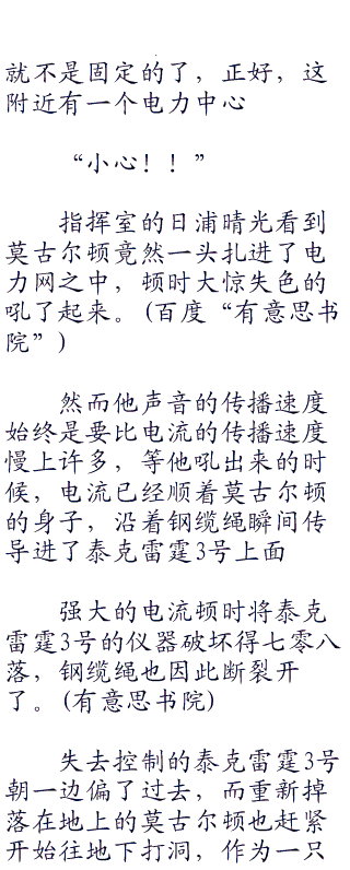 紧接着,只见泰克雷霆3号围绕着莫古尔顿的尾巴旋转了起来,将钢缆绳成功的绕在了莫古尔顿的尾巴上,增强了钢缆绳的摩擦力,可以防止钢缆绳打滑脱离下来。手机阅读更方便m..com