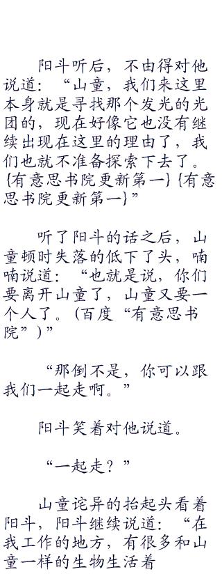 想了想,阳斗又问道:“山童,你在山里待的时间很长,你有没有发现过山里有什么奇怪的地方?”