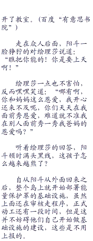 就在大家佩服阳斗那长远的目光和他丰富的想象力的时候,绘理莎却突然插进来破坏了气氛,一句话就让阳斗脸色憋得通红。