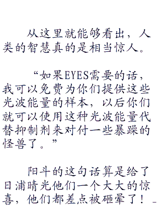 他们eyes队的主要目的在于保护怪兽,可是他们也只是将怪兽当作普通的动物来保护,可绝对没有像阳斗这样将这些怪兽们看得地位更高。