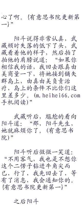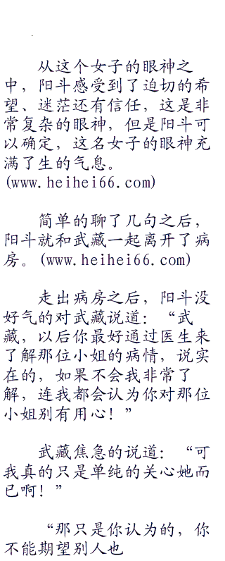 而此时此刻,阳斗和武藏正站在门口听着这个女子的主治医生对她的病情做着阐述。