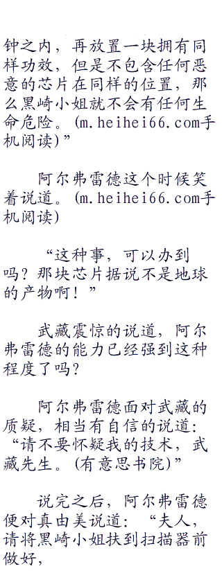 武藏也是难以置信的说道:“这可能吗?我听土井垣队员说,蕾妮头部的那块芯片一旦取出来,几分钟之后,她就会死去的!”