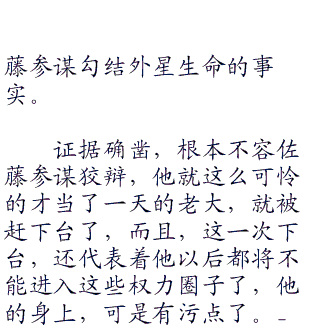 “并不是你们没有发展到那种程度就不具有威胁性,这种命题本身就是错误。手机阅读更方便m..com据我观察,你们地球人早就显现出对于宇宙之外的野心了,并且,你们地球人也足够危险。”