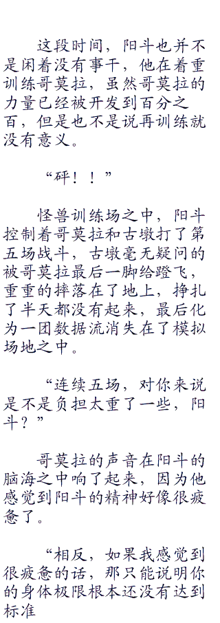 理论上说,阳斗手头上的怪兽可以被强化五次,每一次比每一次要厉害,但是每一次强化的风险都要提高很多,唯一能够提高成功率的办法,就是在第一次强化之后,就不停的锻炼,让怪兽的体魄得到加强,这样才能成功强化。首发