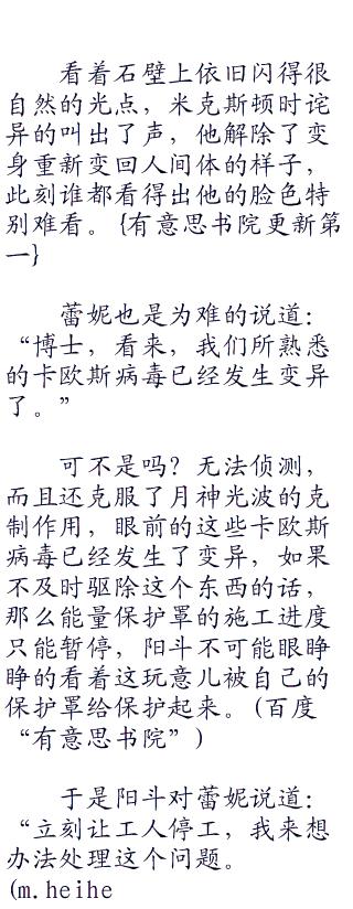 蕾妮见阳斗终于看出哪块石壁上的异状,顿时苦笑道:“博士,您再仔细看看,那可不是普通的光点啊。”