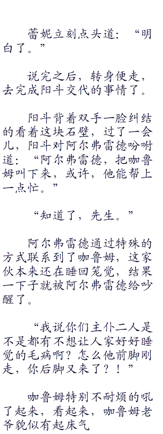 蕾妮也没有直说是什么事,只是让阳斗跟她走一趟,阳斗不解的跟了上去。