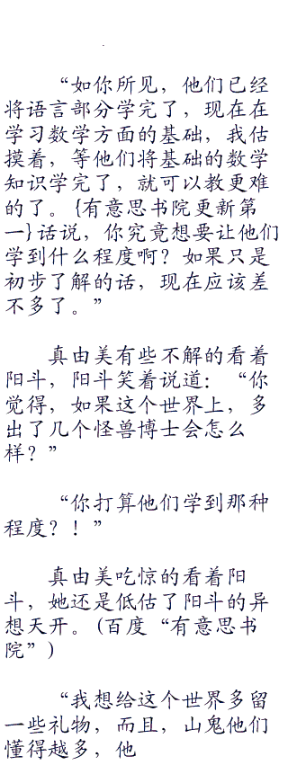 现在真由美已经将语言文字教得差不多了,毕竟只是将山鬼他们会看会读会写那些常用的文