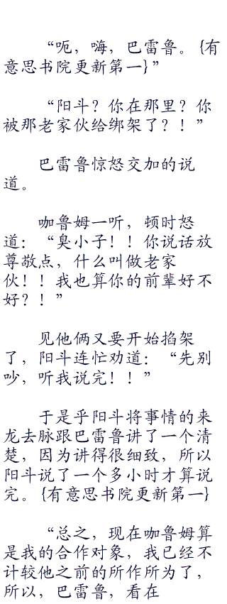 过了一会儿,就从里面传来了巴雷鲁那冷得渗人的声音。
