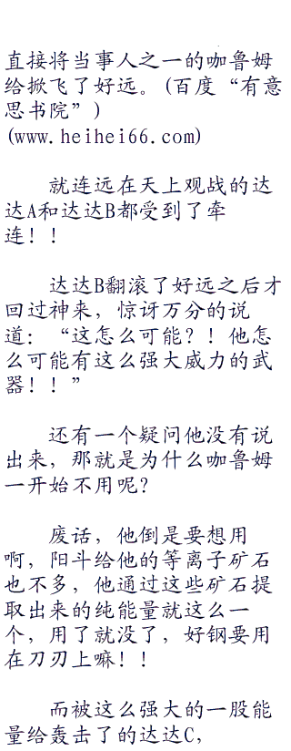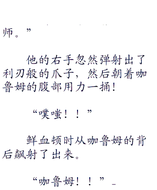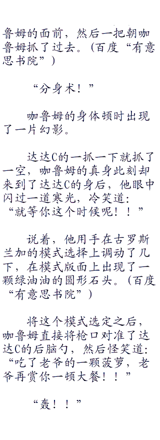 咖鲁姆的反应一向很快,否则他前面那几十年就算是白混了,只见那道光线几乎是插着咖鲁姆的身子滑过去的一样,