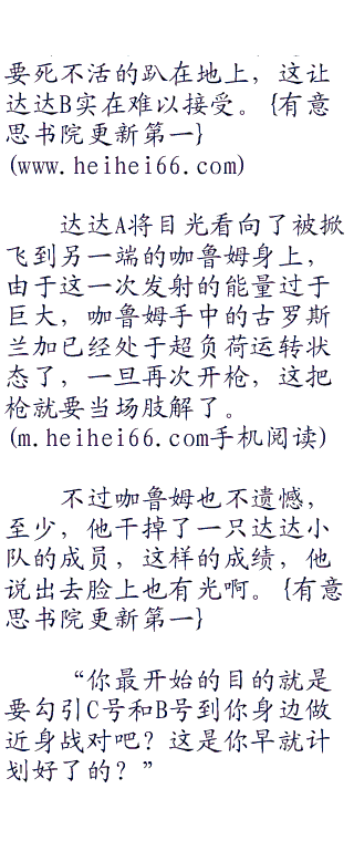 达达b见咖鲁姆实在是太难缠了,这家伙实力其实一般,尤其是他的武器差了他们老远,可就是战斗意识超强,甚至是超过他们,每次自己有所行动这家伙都能够提前预知一二,实在太麻烦。