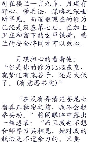 这个坏蛋夫君来楼兰做什么月瑛十分清楚,说好听点是为了阻止兵魔神出世作恶,说不好听点就是偷窃者,低声问道:“那东西到手了。”