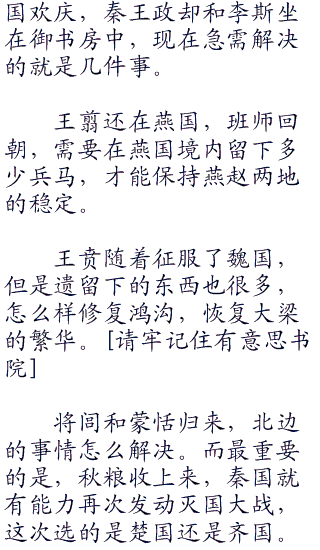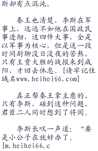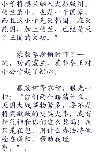而现在大秦之所以发动战争,就是为了消灭战争,如果将世界置于一个国家,建立相同的法律,道德规范,告诉人们什么是对,什么是错。而这个道德规范,就是法律。只有强大有力,稳定统一的国家才能制定法律,让法律完整的施行下去。”