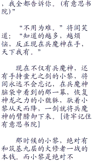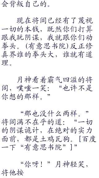 “有什么可怪的,你又没有背叛我。”将闾嘻嘻笑道:“其实看见南公,我就知道了。”