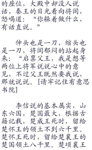王翦立即起身向着秦王郑重而拜,秦王连连摇手,低声笑道:“上将军何须多礼。”