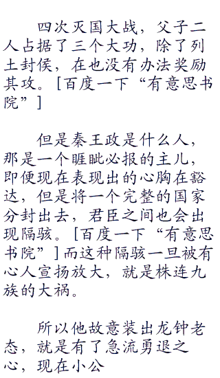 但随着郑国渠的修建完成,吃饱饭的愿望已经实现,大秦国库中堆满了金银财货,粮仓充足,接30连攻下了燕赵魏三国,依然有能力发动灭国大战。这已经是质的改变。