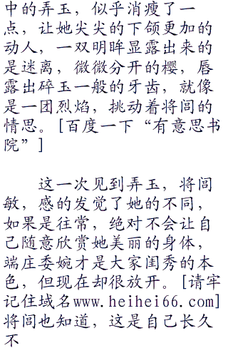 虽然将闾很享受偷,情的感觉,但也知道,弄玉是绝对不肯叫自己一声姐夫的,女人为什么就不能了解一点男人的龌龊心理。