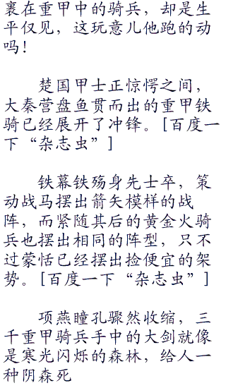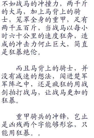 “上马”铁幕和铁殇在仆兵的帮助下上了战马,站在重甲身后的仆兵开始挨个伺候这些大爷,没办法,战甲太重,重甲骑兵自己上不去。