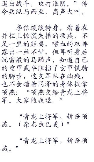 站在大秦营盘的王翦嘴角露出了一丝淡淡的微笑:“传令兵,命令李信,杨瑞,章邯退出战斗,全力攻打淮阴,直袭项燕老巢,将战场交给玄甲铁骑。”