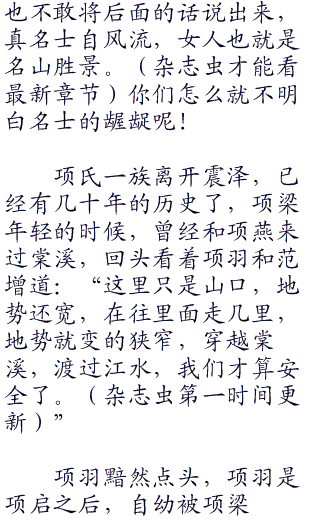 楚国之危害,不在楚王室,而在项氏一族,这是王翦和将闾共同制定的攻楚战略,但是苏羽却有名士的风范,在湖光和夜空看来,所谓的名士风范,就是和项羽麾下的腾龙军团堂而皇之的决战。