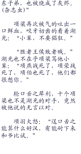 夜空没事,湖光也按下心来,哈哈笑道:“也不知道是谁,被大秦铁骑追的狼逃鼠窜,就连八千江