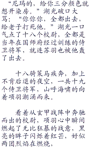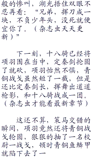 两马交错,项羽手中的青铜战戈已经化成了一道黑线,夜空一剑撩开项羽的青铜战戈,反手一剑就是一击腰斩,看他的架势,分明已经红了眼,想要和项羽同归于尽。