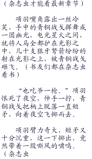狼牙箭破空而至,项羽却一点也不慌乱,青铜战戈挥舞如风,先格开夜空的定秦剑,单手握住枪柄,反手一撩,将狼牙箭击飞。