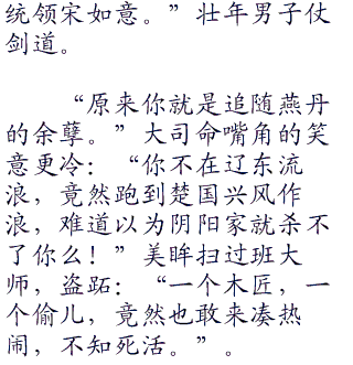 夜空也认出了这是跟随在剑圣盖聂身边的那个小小少年,年纪虽然不大但是力大无穷,虽然明知道打不过这小子,也不肯弱了气势。狂吼一声催马相迎。