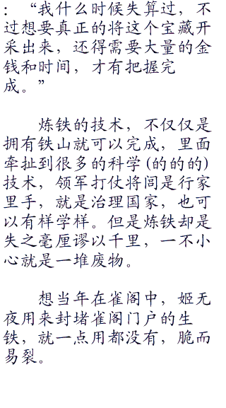 现在将闾最缺的是什么,就是人才。公孙家族专注于青铜,但是那玩意儿和黄金差不多,在战国时代,青铜和帛都是可以当货币用的。以物易物,远远大于货币的使用。