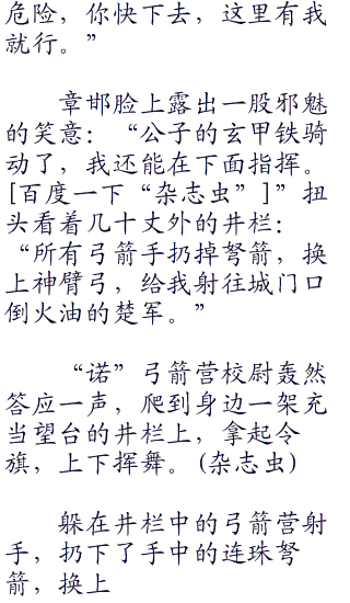 将闾也很怕死,不想呈英雄,身为筑基七层的大修者,被从十丈高的城墙上扔下来的滚木礌石砸中,也得殉落不可。