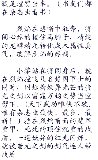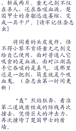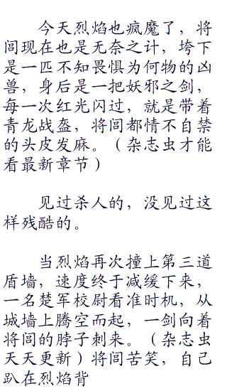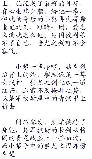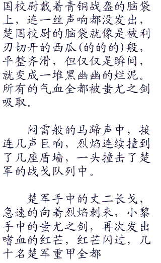 烈阳仰首长嘶,瞬间将速度提升到了极致,小黎站在将闾身后,手中拎着蚩尤之刃,没一次的挥舞,蚩尤之刃都在吸收敌人的鲜血。
