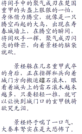 就在将闾炸开寿春城门的同时,王翦已经下令放弃攀爬城墙,站在高高的望楼上,看着无双巨人就像是庞然凶兽,站在城门口等候玄甲铁骑入城。