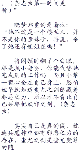 将闾脑海中瞬间就出现了卫庄拿着蚩尤之剑走火入魔的情景,两只眼睛泛出阴寒的红光,最骇人的是两颗瞳孔变成绿豆大。