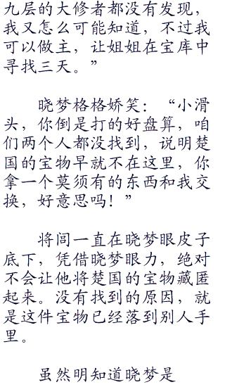 但晓梦也不是吃素的,向着将闾淡淡一笑:“不要以为得到苍龙七宝就是好事,当年逍遥子从俗世中得到幻音宝盒,想要增加功力差点走火入魔,所以现在境界这么低。”
