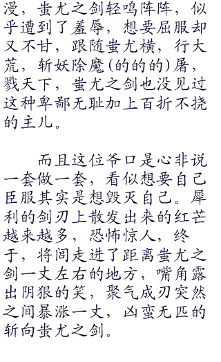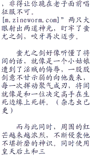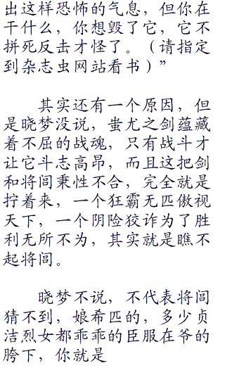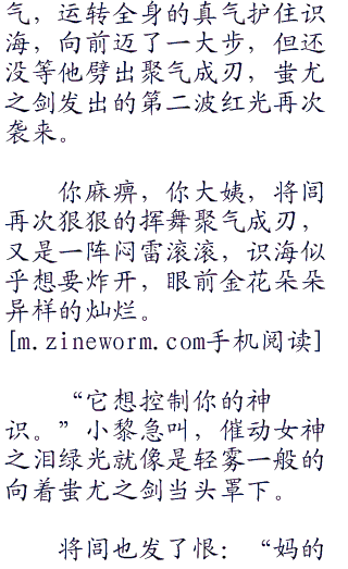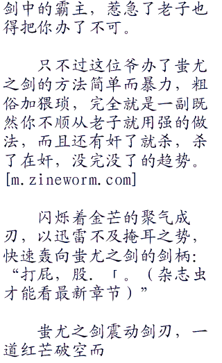 将闾是真的怕了,这还是一把剑吗,简直是一只成精的妖怪,就是赤练蛇王和小桃红也没这么狂暴吧!