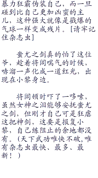 凶的怕横的,横的怕不要命的,蚩尤之剑的霸者之心,完全是建立在自身强大之上,之所以能够控制卫庄,小黎,全都是因为他们心中**。