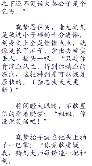 晓梦心中又好气又好笑,这小子存心将这把神剑砸成一块废铁。完全无视神剑的珍贵。但总算放下心来,不管神剑再通灵再犀利,力量的源泉永远是握剑的人,而不是剑。不为剑所御,变成剑的奴隶。