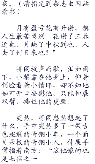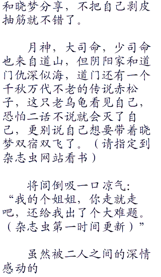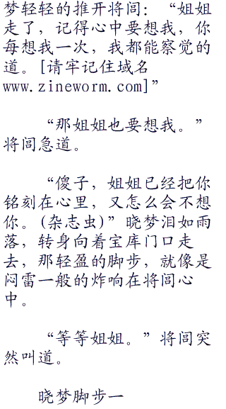 这虽然是一个承诺,但却虚无缥缈,将闾现在也找不出词汇安慰晓梦,她离开的真正目的,就是不想让自己看着她逐渐的苍老,在自己心中留下一个最美的姐姐。