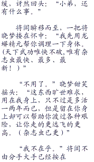 “小弟,别傻了。”晓梦含泪带笑的看着他:“这一生能够认识你,姐姐已经心满意足了,如果能够铸就金丹,我就下山来寻找你。”