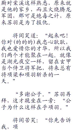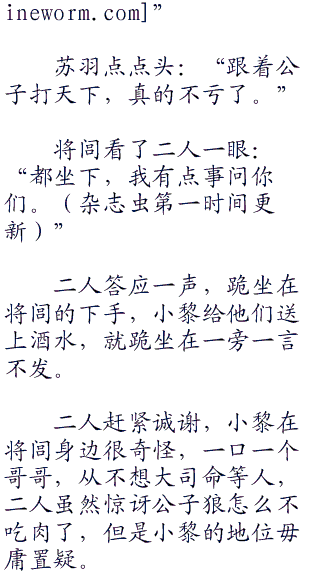 将闾笑道:“湖光和苏羽回来了。”小黎蹭的一下就从将闾身上窜了起来,快速帮将闾整理了一下衣袍,又低头整理了一下小裙子,这才面色如常的跪坐在将闾身边,捧起小几上的酒坛,给他在酒樽中填上美酒。
