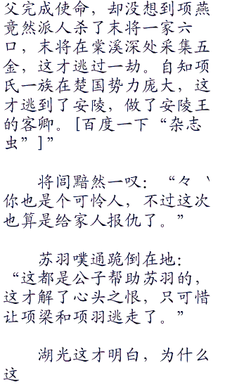 湖光躬身道:“我们两个带着一万玄甲赶到江东,却去晚了一步,楚王负刍派出的王宫禁军将项氏一族的妇孺斩杀殆尽,我们两个没有轻举妄动,等楚国禁军完事之后,才埋伏在一道山梁后面,打了