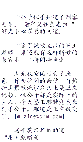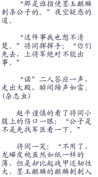 守护在外面的赵平,湖光,夜空带着几十个玄甲将士一拥而入,看见将闾的小腹一片猩红叫道:“公子遇刺,抓住刺客。”