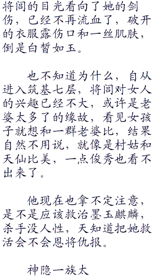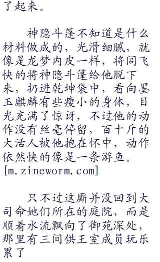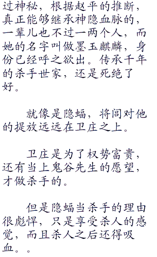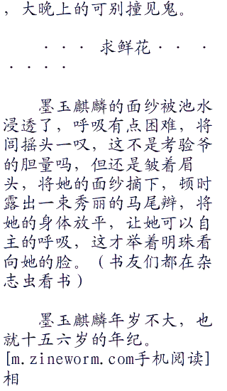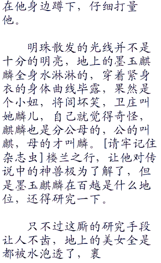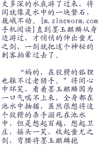 作为神隐一族的佼佼者,不用说也知道墨玉麒麟的水中功夫了得,所以自从大司命装扮成自己,将闾就沉入了御苑的池水之中。
