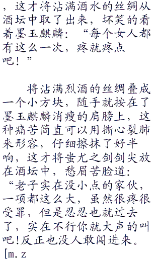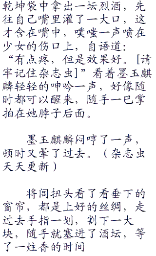 贴身的夜行衣,紧紧的“零零零”包裹住有点稚嫩的体型,玲珑的曲线有一种说不出来的女人味,将闾揉着鼻子,肆无忌惮的看了一眼,自语道:‘嗯,还不错,楚国的山水很养人,这小丫头发育的很完美,年纪虽然有点小,但也勉强能用了。”