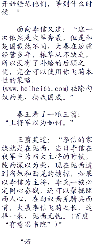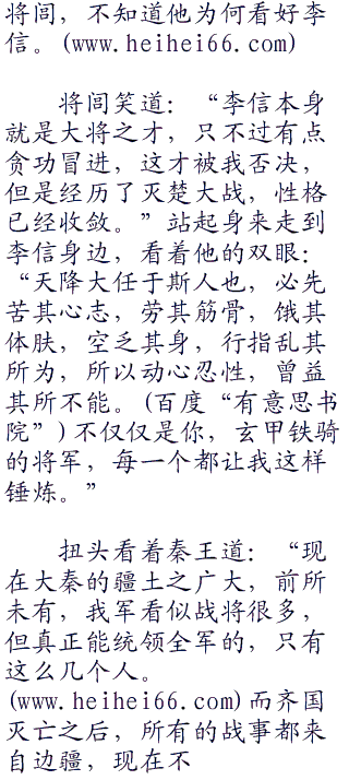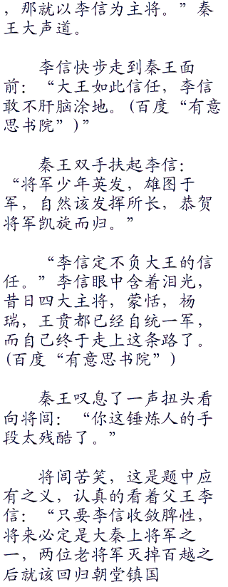李信身体一震,不敢置信的看着将闾,自从当日在朝堂之上灭楚方略被将闾否决之后,李信一直担任中军司马,从没想过自己成为主将。主要是打击太大了。