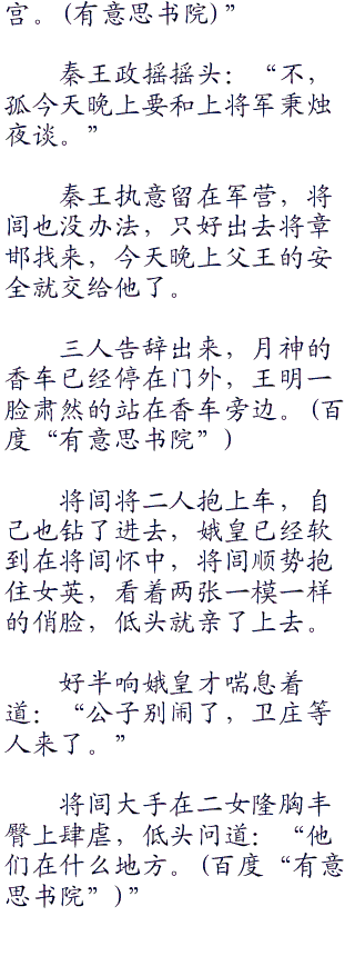 秦王政看天色已晚笑道:“散了吧!,大家也该回去安歇了。”