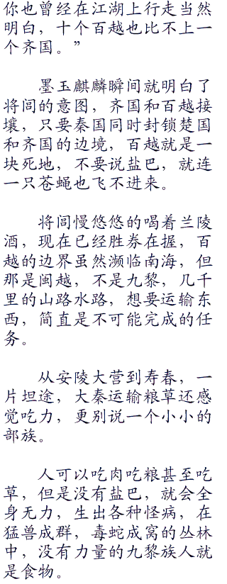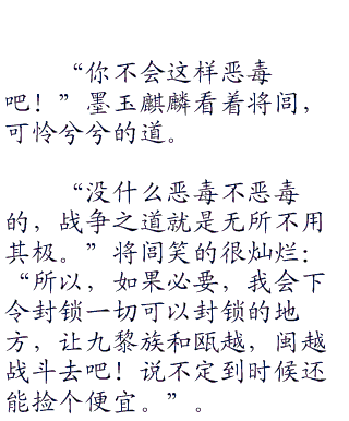 “九黎一族放弃了中原故土藏匿在百越,和野兽毒蛇土著争夺生存的权利,但是,九黎一族无时无刻不想再次行走在阳光之下,成为大地的主宰。