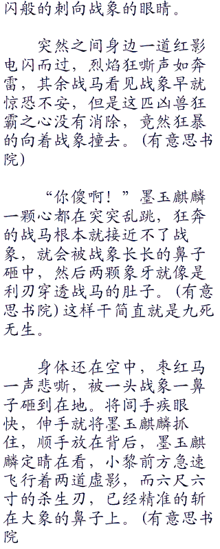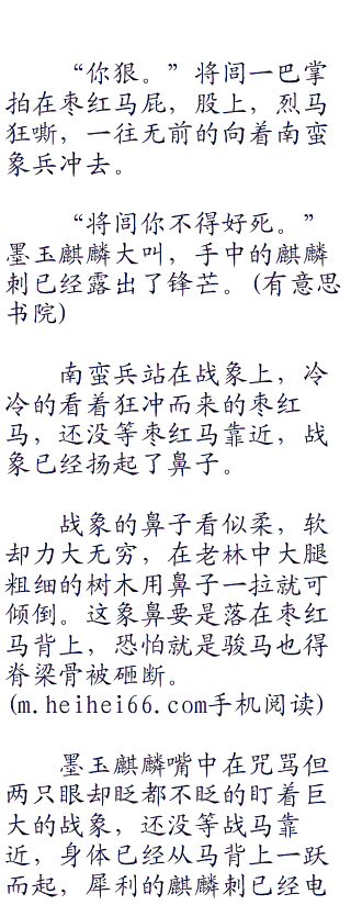 墨玉麒麟策马靠近,低声说道:“象兵和战象身上的盔甲,都是密林中的老藤用桐油侵泡,经过七七四十九天反复晾晒侵泡,不仅轻便而且坚韧无比,就是大秦骑兵的狼牙箭,也穿透不了。”