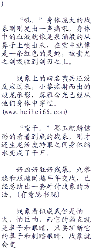 将闾微微点头,也凝重起来,这些战象身上都披着枯黄的藤甲,就连长长的鼻子上端都有藤甲保护,而灵活的象鼻和巨大的象牙,不仅仅是美食和宝物,还是可怕的武器。